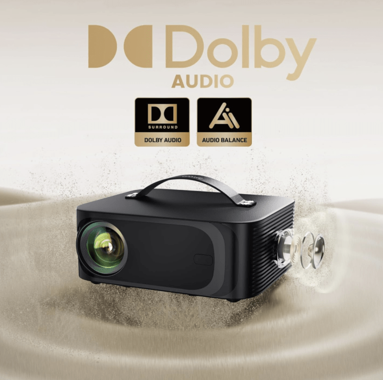 Bring the big-screen cinema to any backyard, conference room, or living space with this versatile projector. Designed for easy set-up and clear, vibrant images, it supports 4K input for crisp detail, wireless streaming over Wi‑Fi 6, and Bluetooth audio for connecting speakers or headphones. Built-in speakers with Dolby-style audio tuning deliver fuller sound without extra equipment, and a convenient top handle makes it simple to carry between locations. Ideal for outdoor movie nights, presentations, or watching sports, this projector lets you project large, bright images from laptops, media players, or mobile devices with minimal fuss. INCLUDES STAND